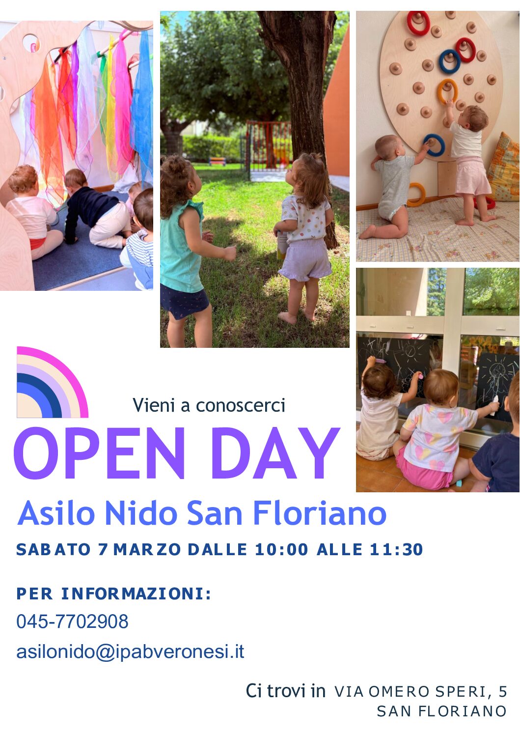 Contenuto Sabato 07 marzo 2026 dalle 10:00 alle 11:30 l'Asilo Nido apre le sue porte per incontrare le famiglie che sono interessate al servizio. Open day marzo 2026